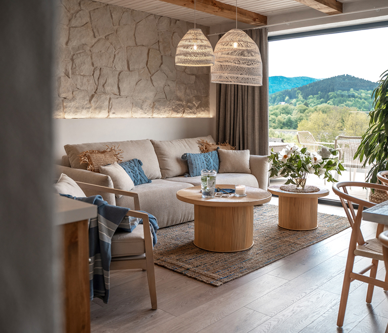 Wnętrza w Mucharskim Wzgórzu to prawdziwe perełki, inspirowane różnymi, wyjątkowymi miejscami na Ziemi, co nadaje im niepowtarzalny charakter.